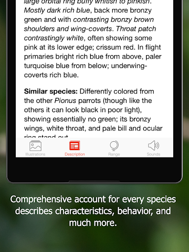 • Audio recordings for over 1500 species to support identify unfamiliar bird calls in the field or to study for an upcoming trip